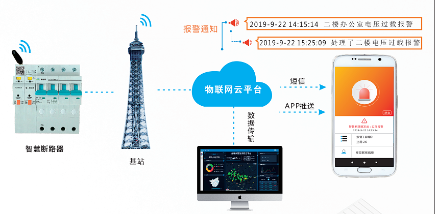 金特萊JTL-ZH智慧斷路器基于物聯(lián)網(wǎng)技術(shù)與智慧用電監(jiān)管技術(shù)相結(jié)合的新型斷路器,通過物聯(lián)網(wǎng)技術(shù)將設(shè)備的電壓、電流、溫度、漏電、功率等監(jiān)測數(shù)據(jù)傳輸至大數(shù)據(jù)管理平臺,并可通過手機(jī)APP與PC端監(jiān)管云平臺進(jìn)行遠(yuǎn)程控制,實(shí)現(xiàn)用電設(shè)備的智能管理。