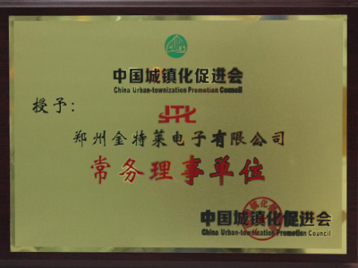 中國(guó)城鎮(zhèn)化促進(jìn)會(huì)授予鄭州金特萊電子有限公司:常務(wù)理事單位證書(shū)