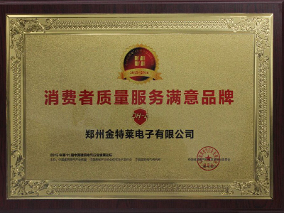鄭州金特萊電子有限公司獲得2015消費者質量服務滿意品牌證書