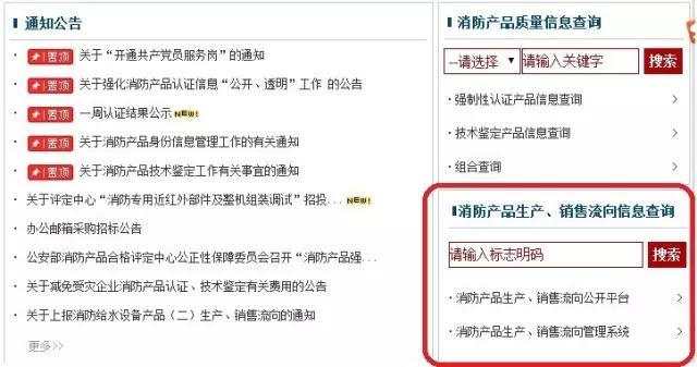 官網:www.cccf.net.cn 其中有“消防產品生產、銷售流向信息查詢”欄